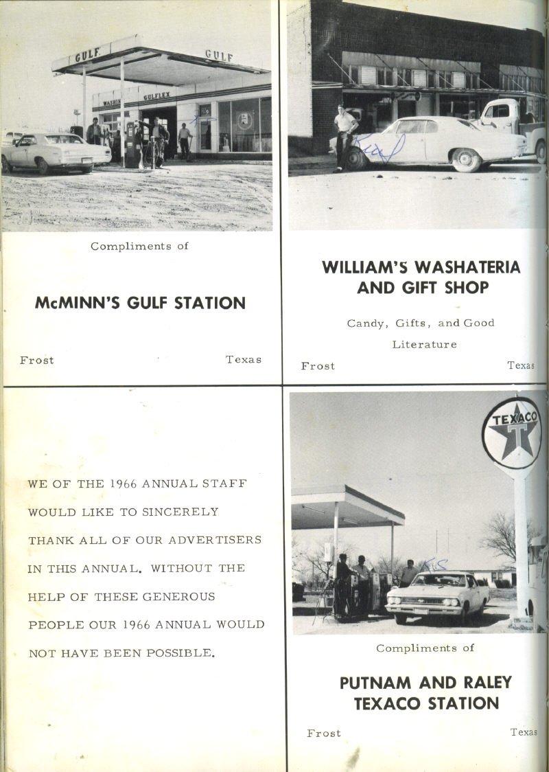 Advertisers: McMinns Gulf Station; Williams Washateria and