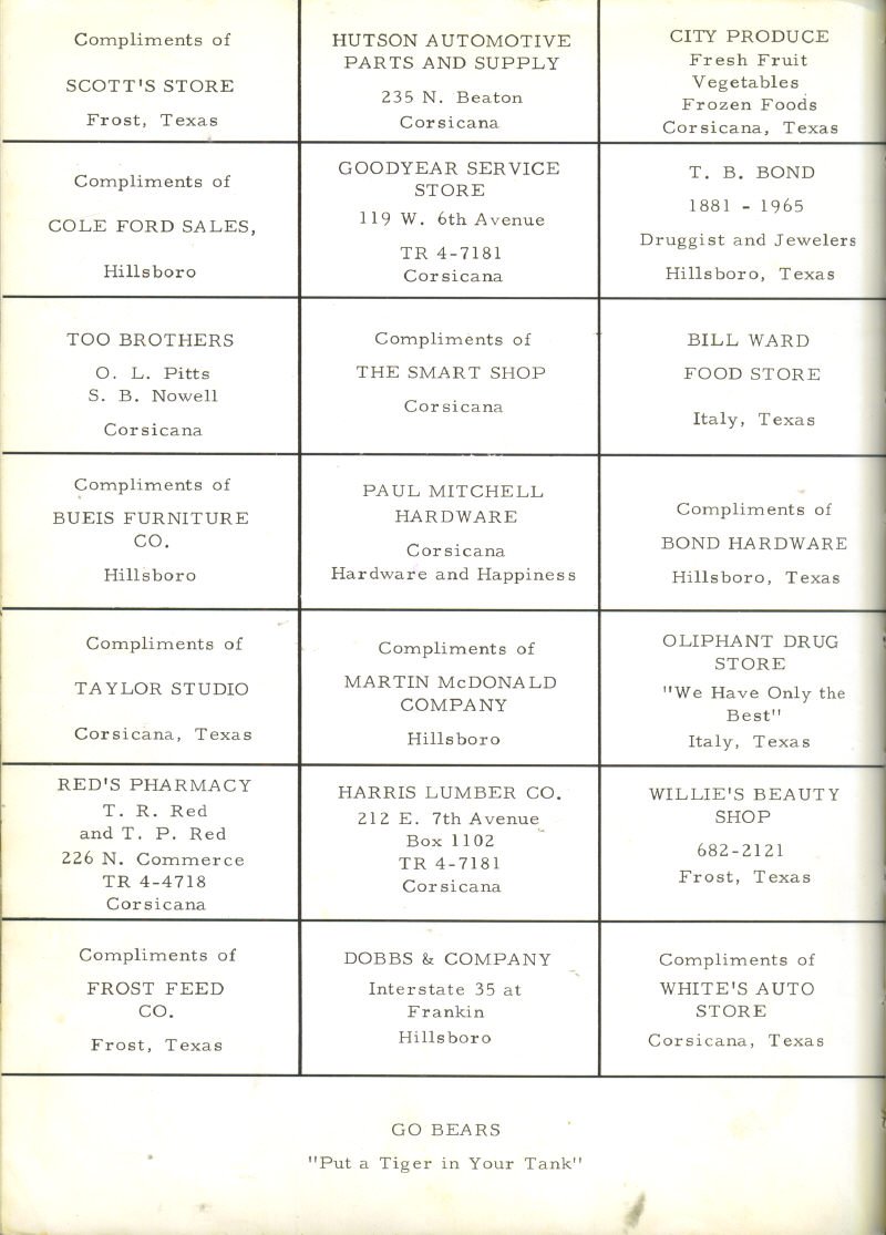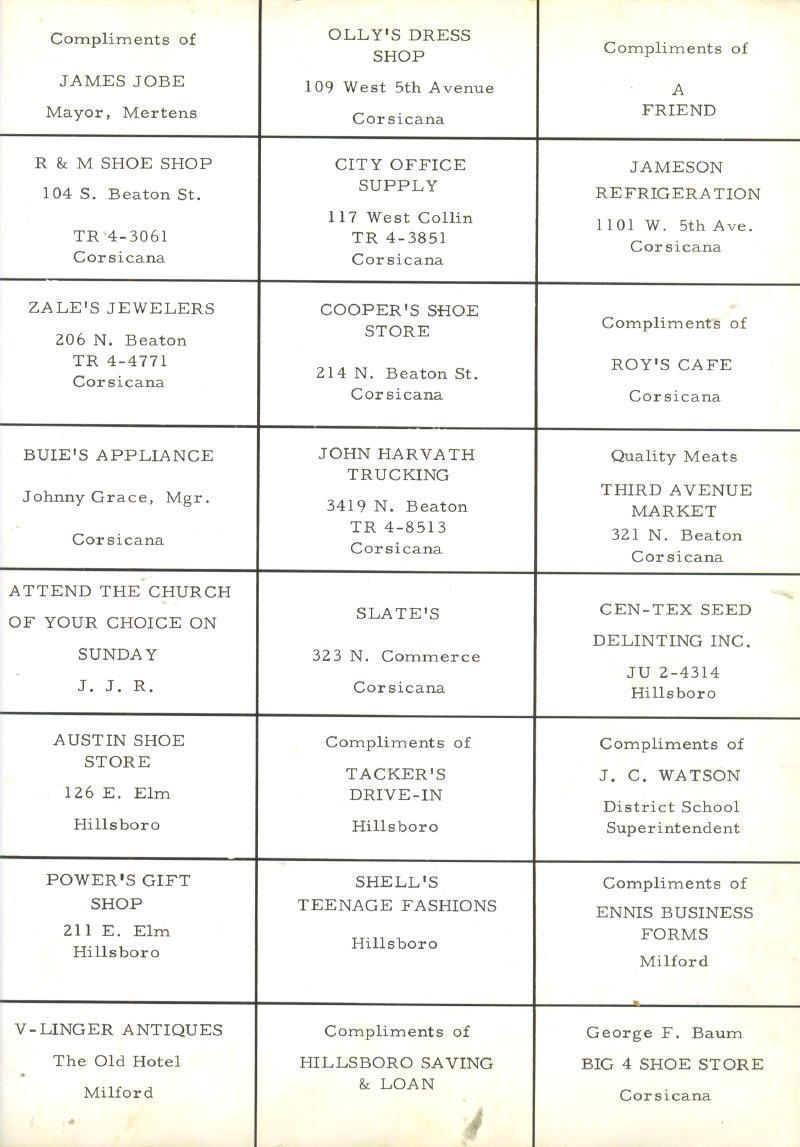 Advertisers: The Cue Club; Navarro Auto Repair; Corsicana