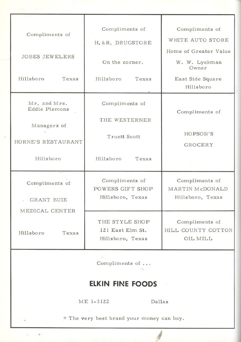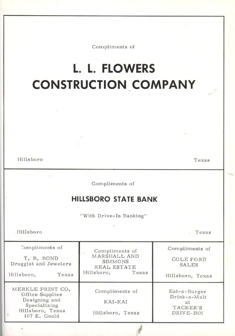 Ads - L. L. Flowers Construction Co. - Hillsboro State Bank -