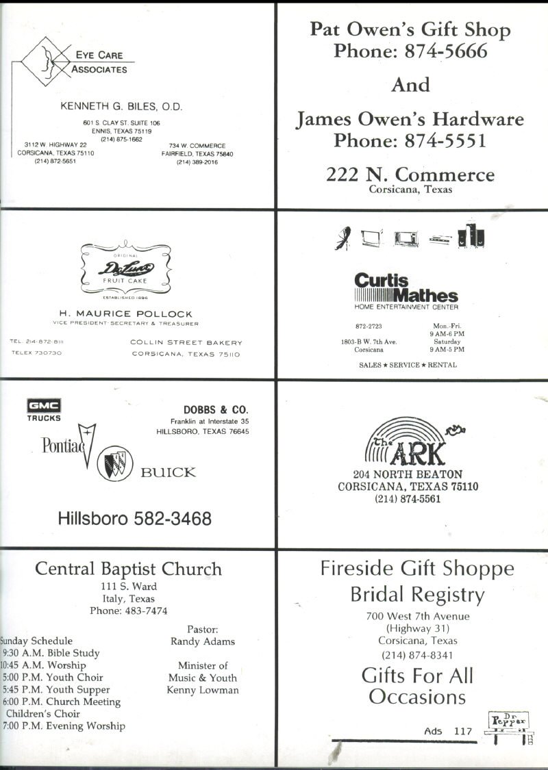 Ads Kenneth Biles Eye Care Pat Owens Gift Shop Deluxe