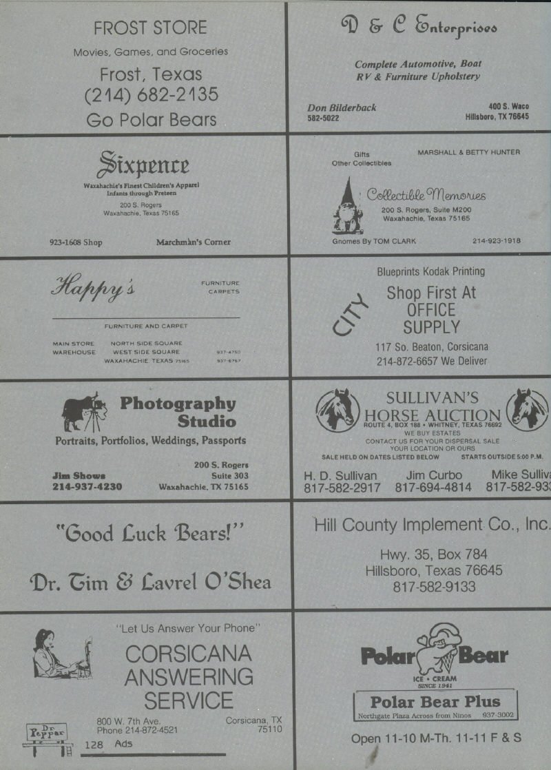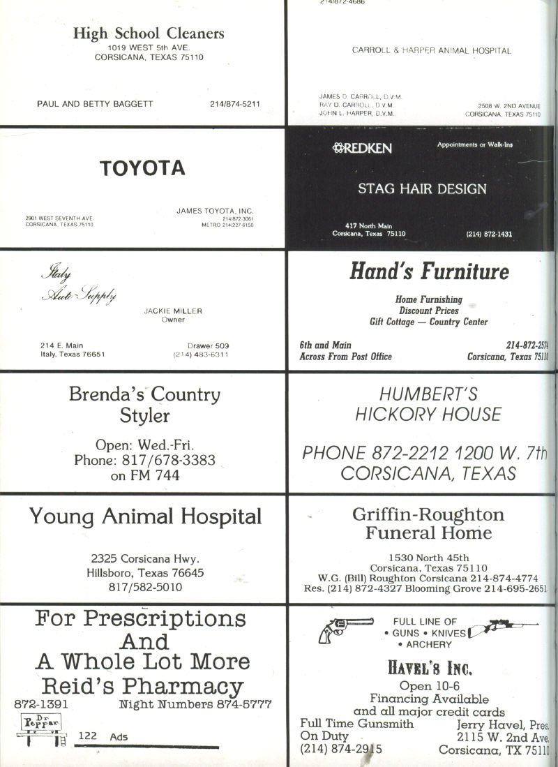 Ads McGraws Food Store BG Insurance Navarro County Elec.