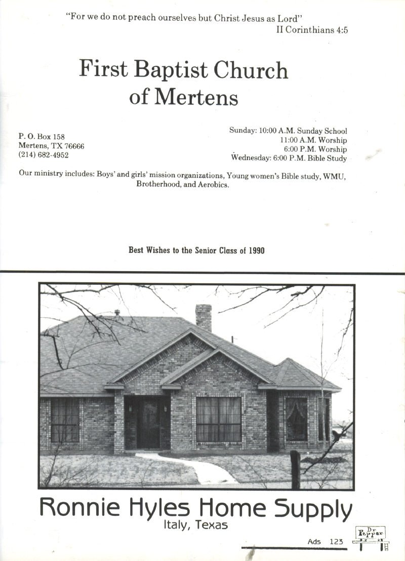 Ads First Baptist Church of Mertens Ronnie Hyles Home Supply