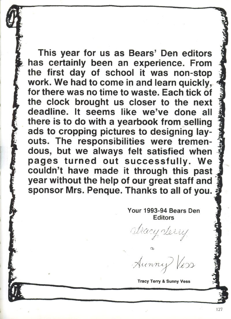 Thank you note from Bears Den Staff