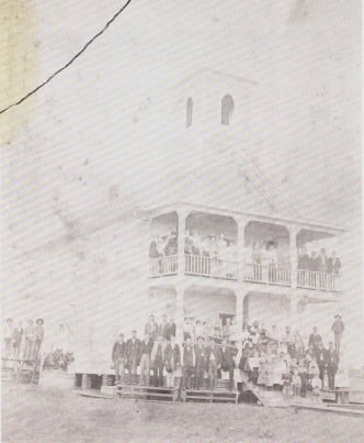 two teachers. By 1895 the school consisted of three large rooms. The lower floor of the Masonic Hall was used for the primary department. The upper floor served the high school.