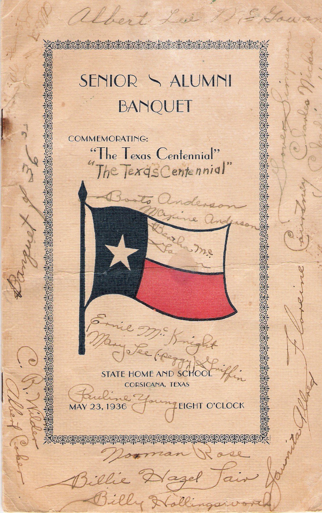 1936 State Home Alumni Banquet Program Corsicana, Navarro County, Texas