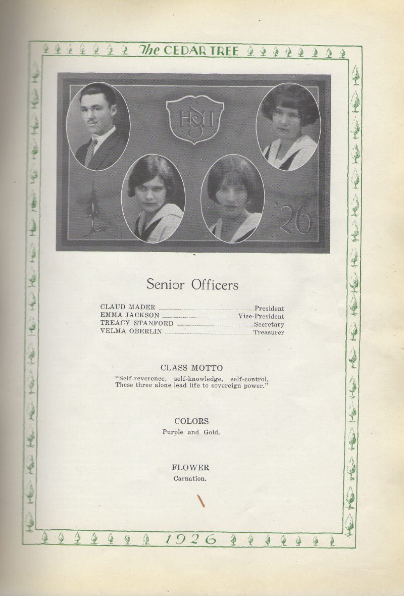 Stanford, Velma Oberlin; Class Motto, Colors, Flower