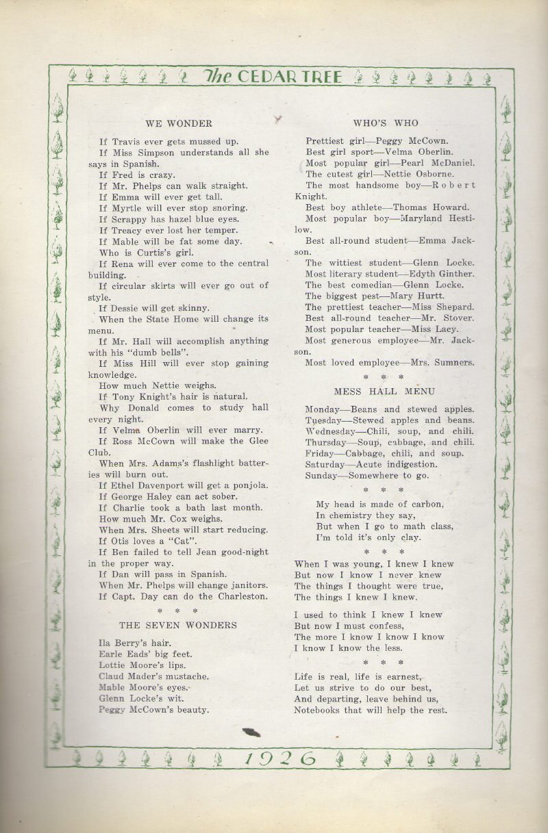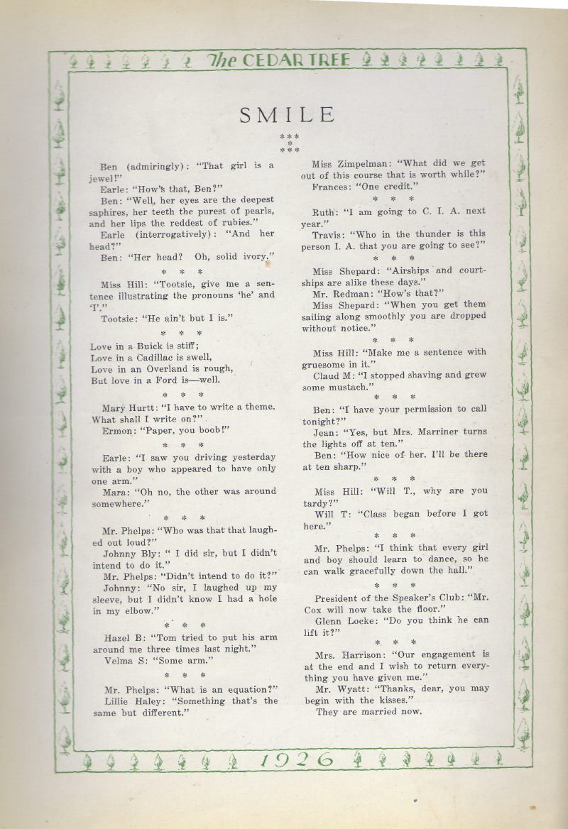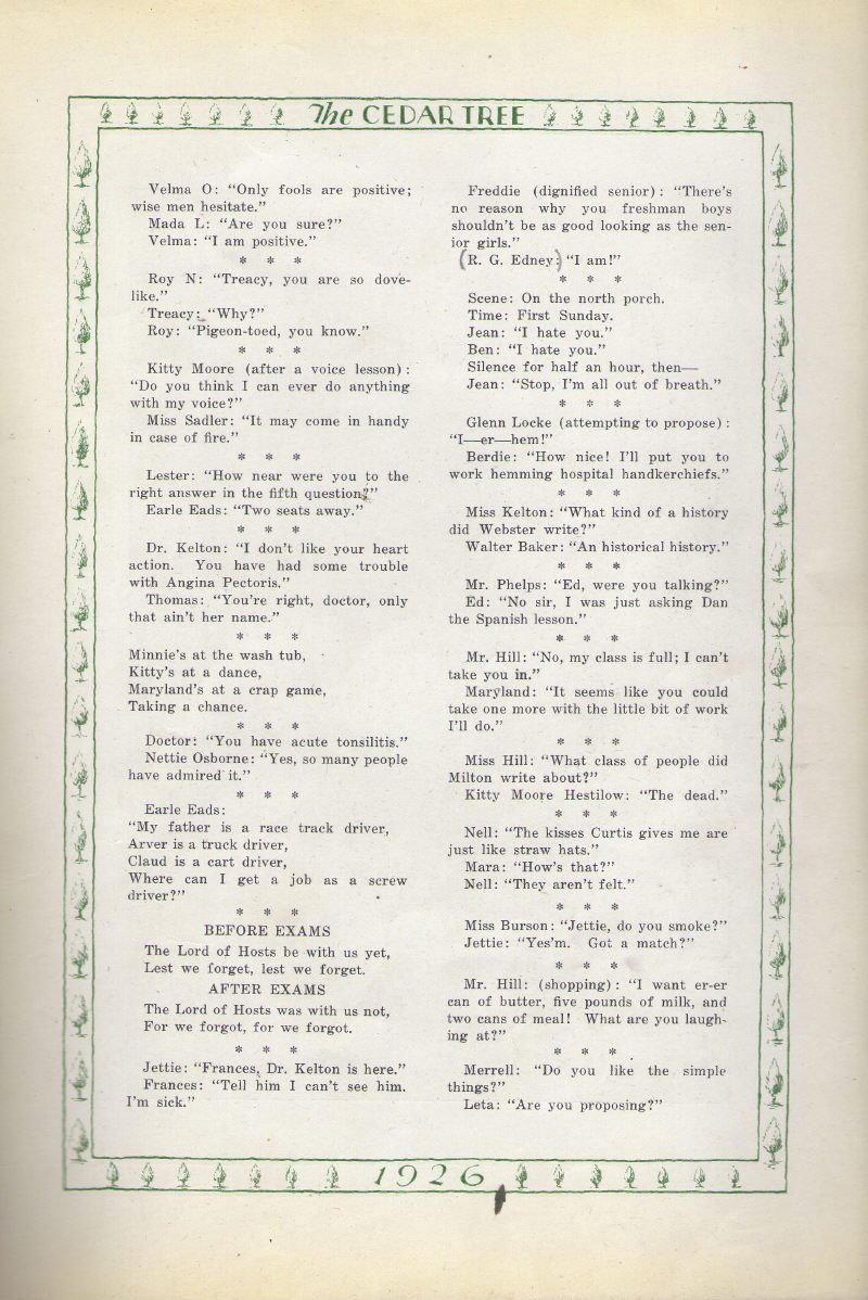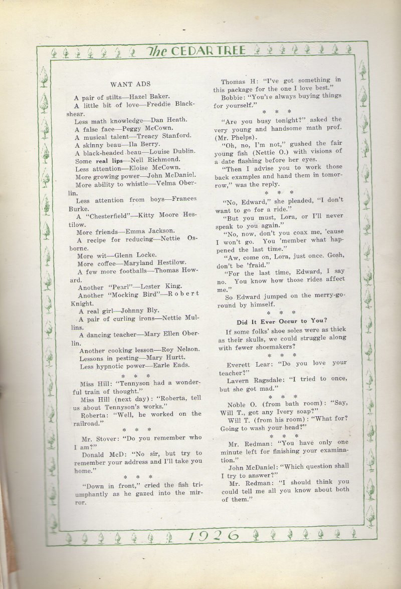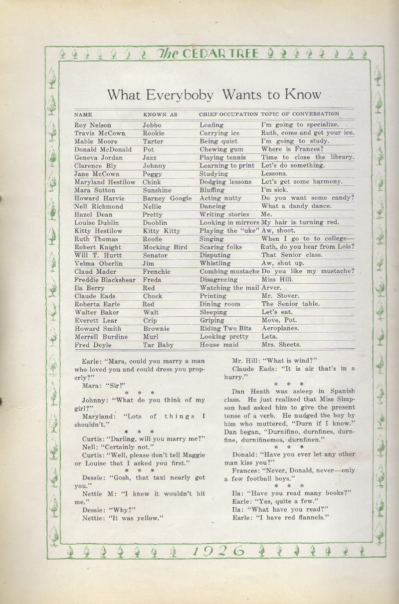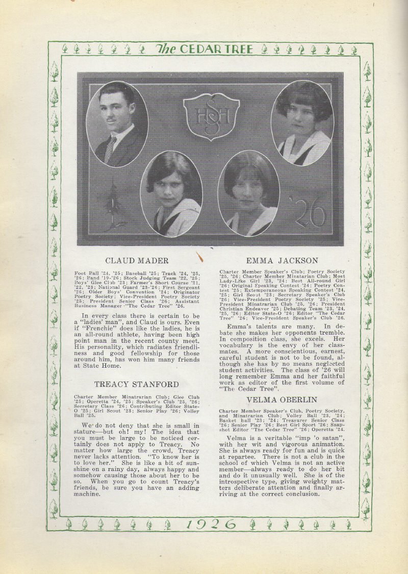 Moore, Claud Mader, Velma Oberlin, Jeneva Jordan, Mr. Carrol