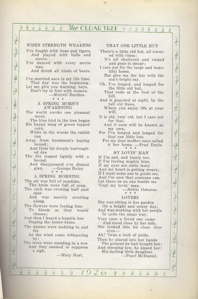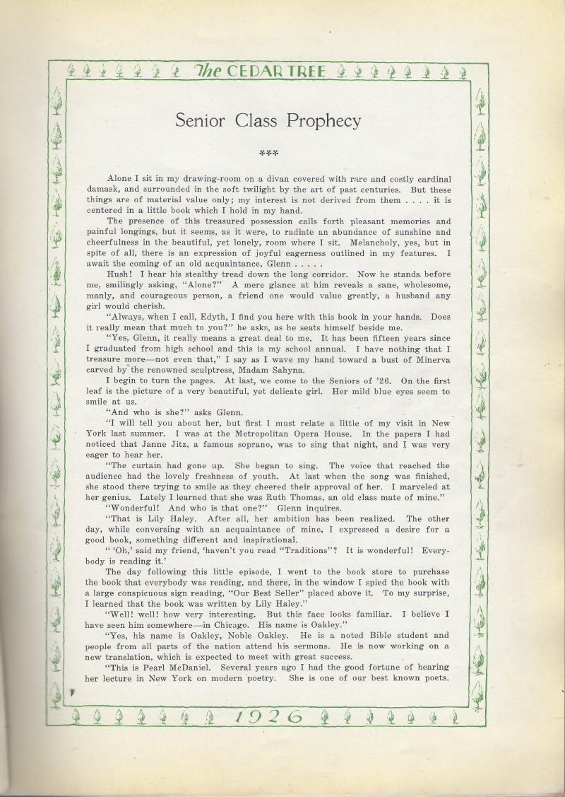 Oberlin, Lavern Ragsdale, Frank Hayes, Myrtle Reed, Mada Love,