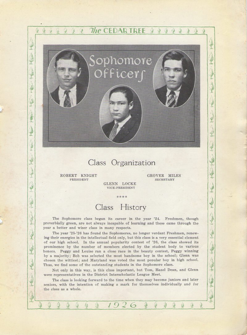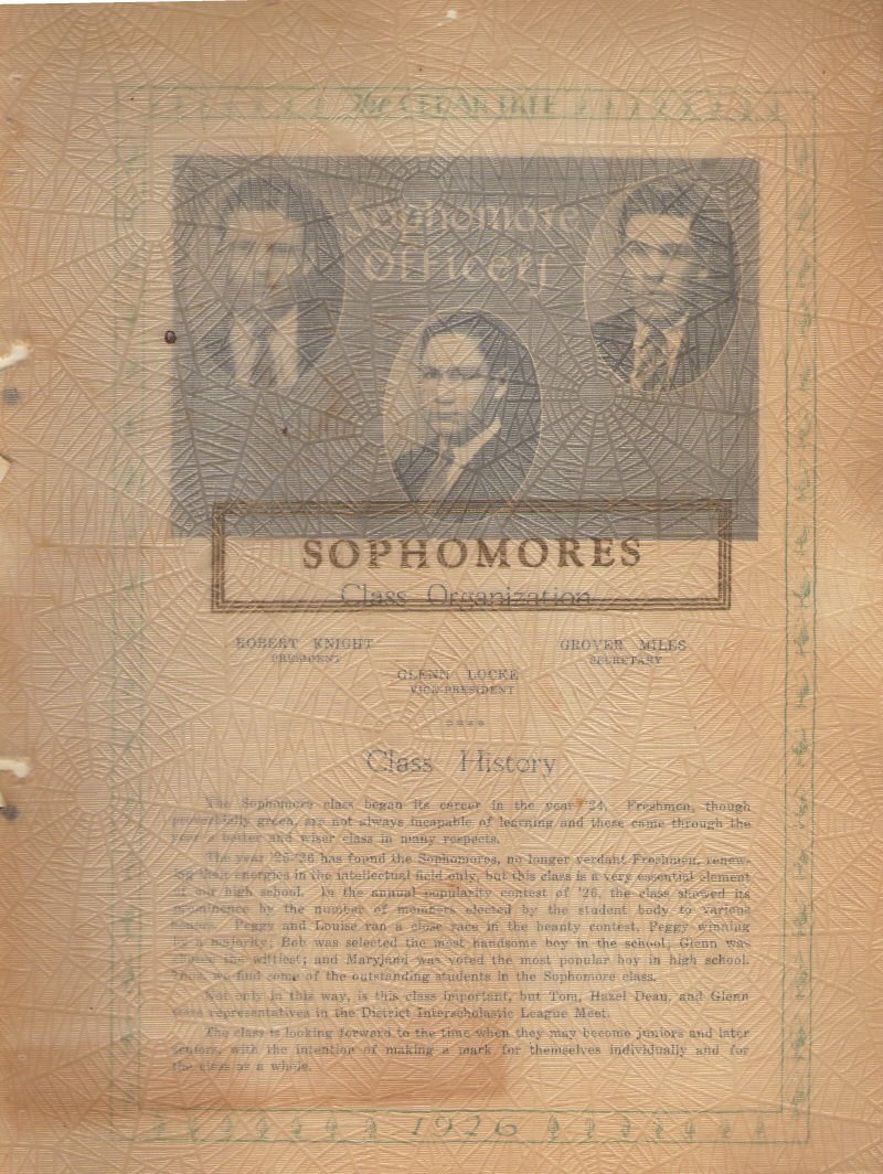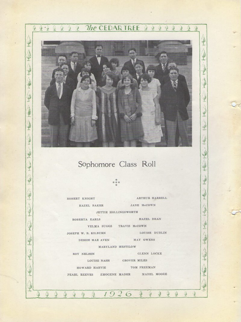 Sophomore Class Roll - Robert Knight, Hazel Baker,