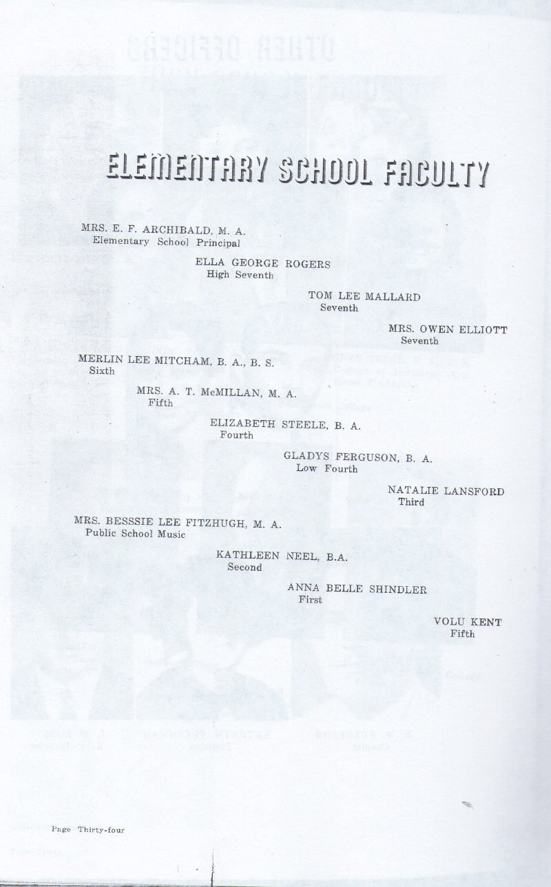 Elementary School Faculty - Mrs. E. F. Archibald,
