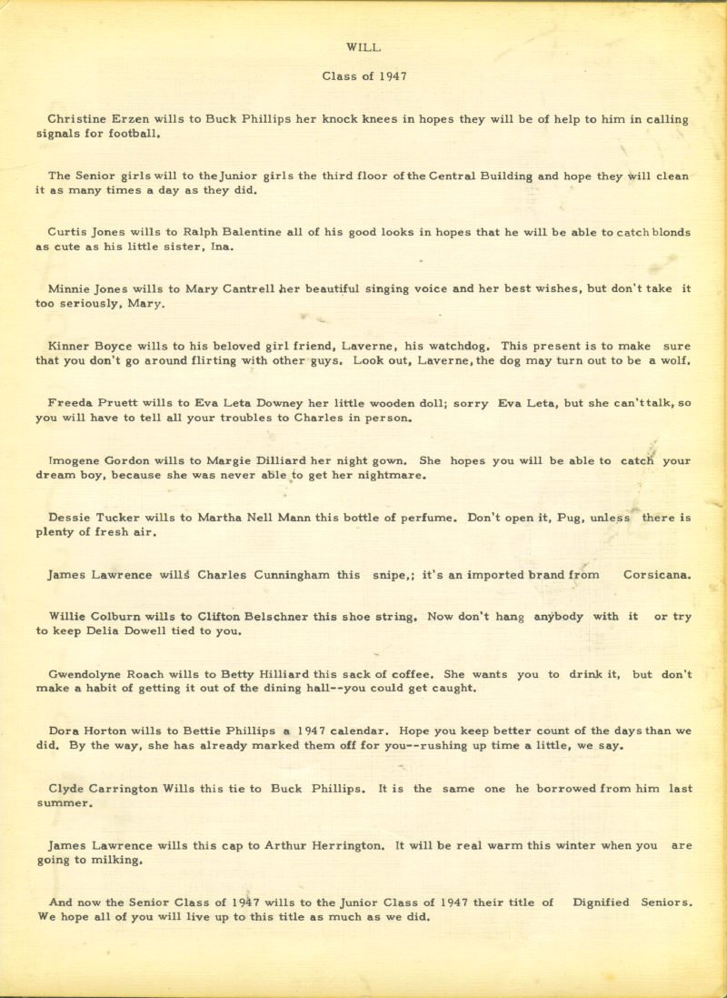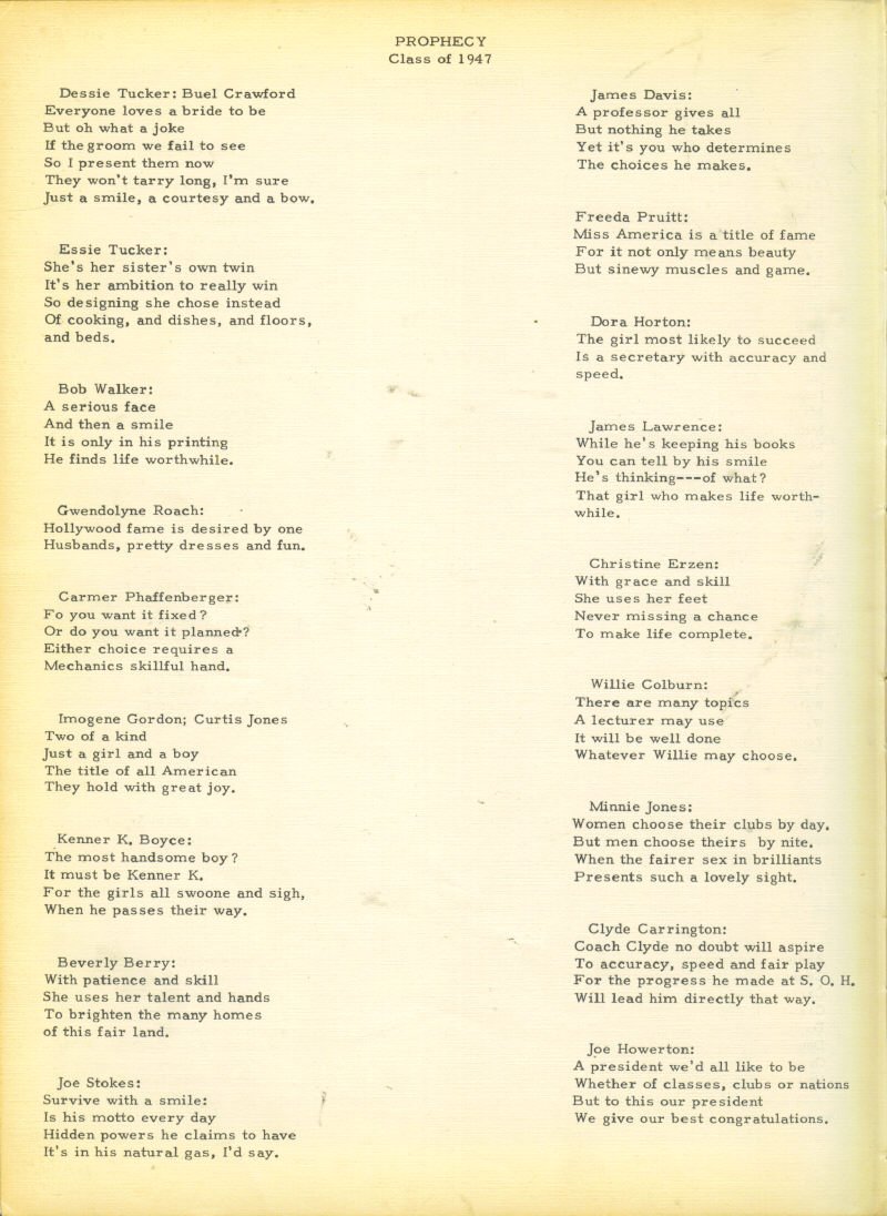 Seniors: Beverly Berry; Kinner K. Boyce, Clyde