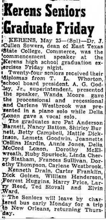 1957 Kerens High School Seniors Graduate Emhouse, Navarro County, Texas