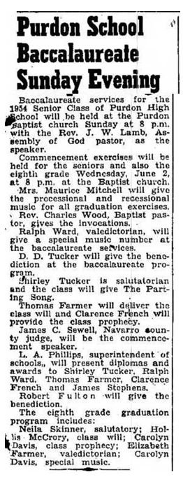 1954 Purdon School Baccalaureate Purdon, Navarro County, Texas