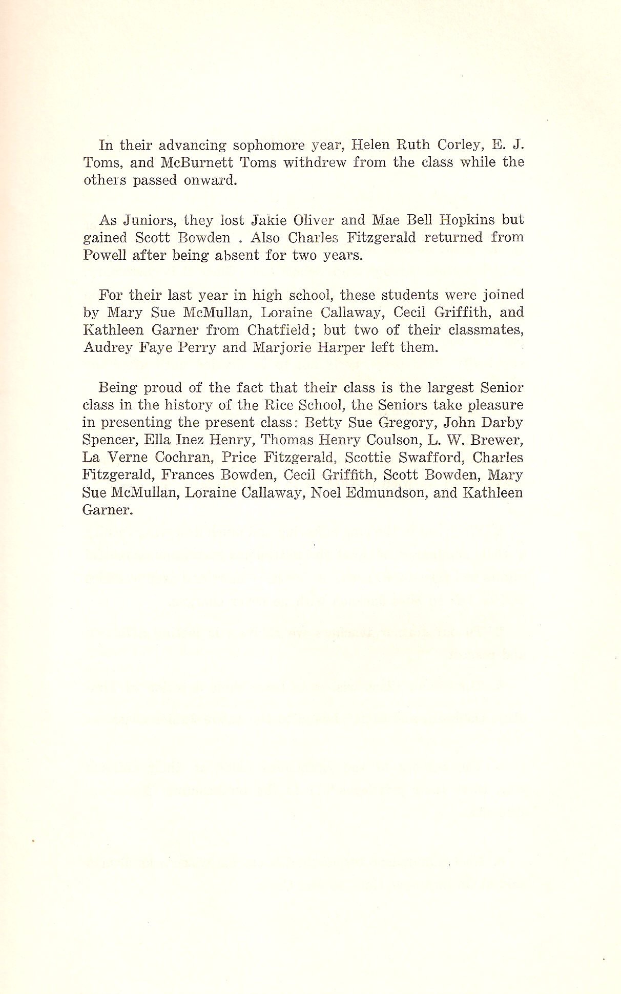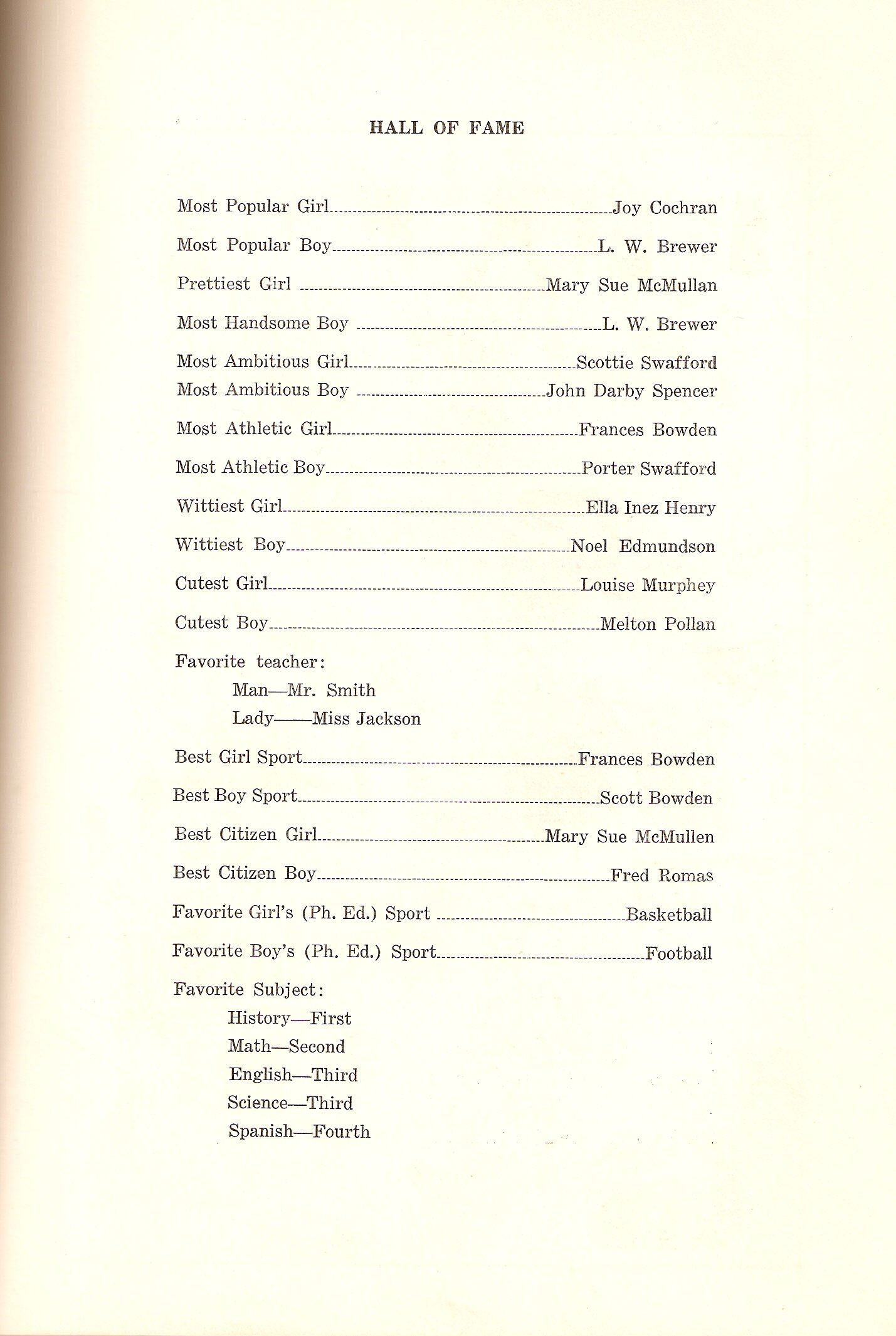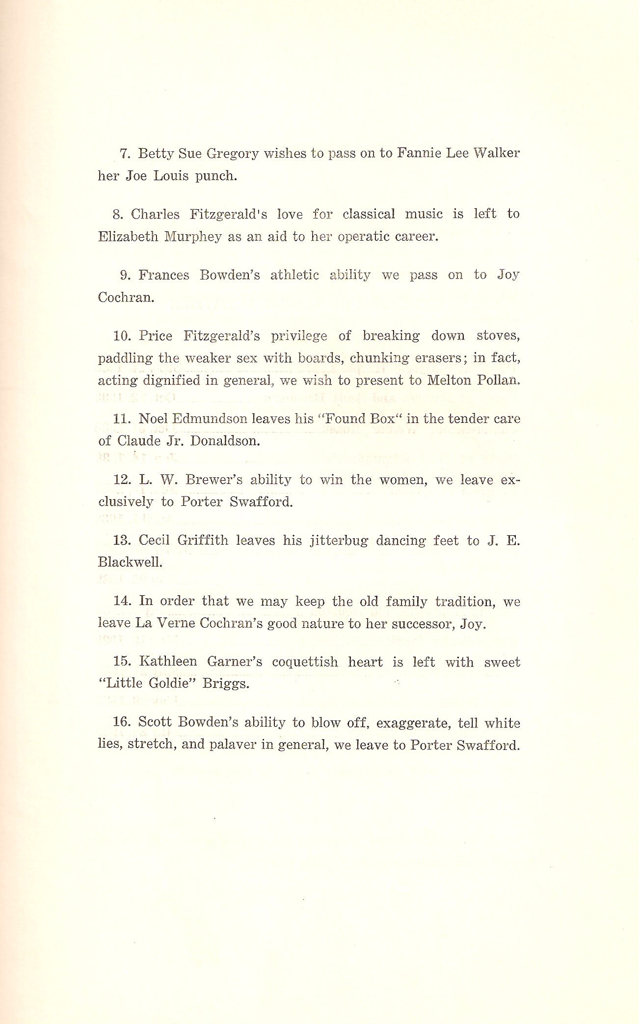 Junior Class Photos: Joy Cochran, Melton Pollan, Earlene Briggs, Claude Donaldson, Annelle Harper,