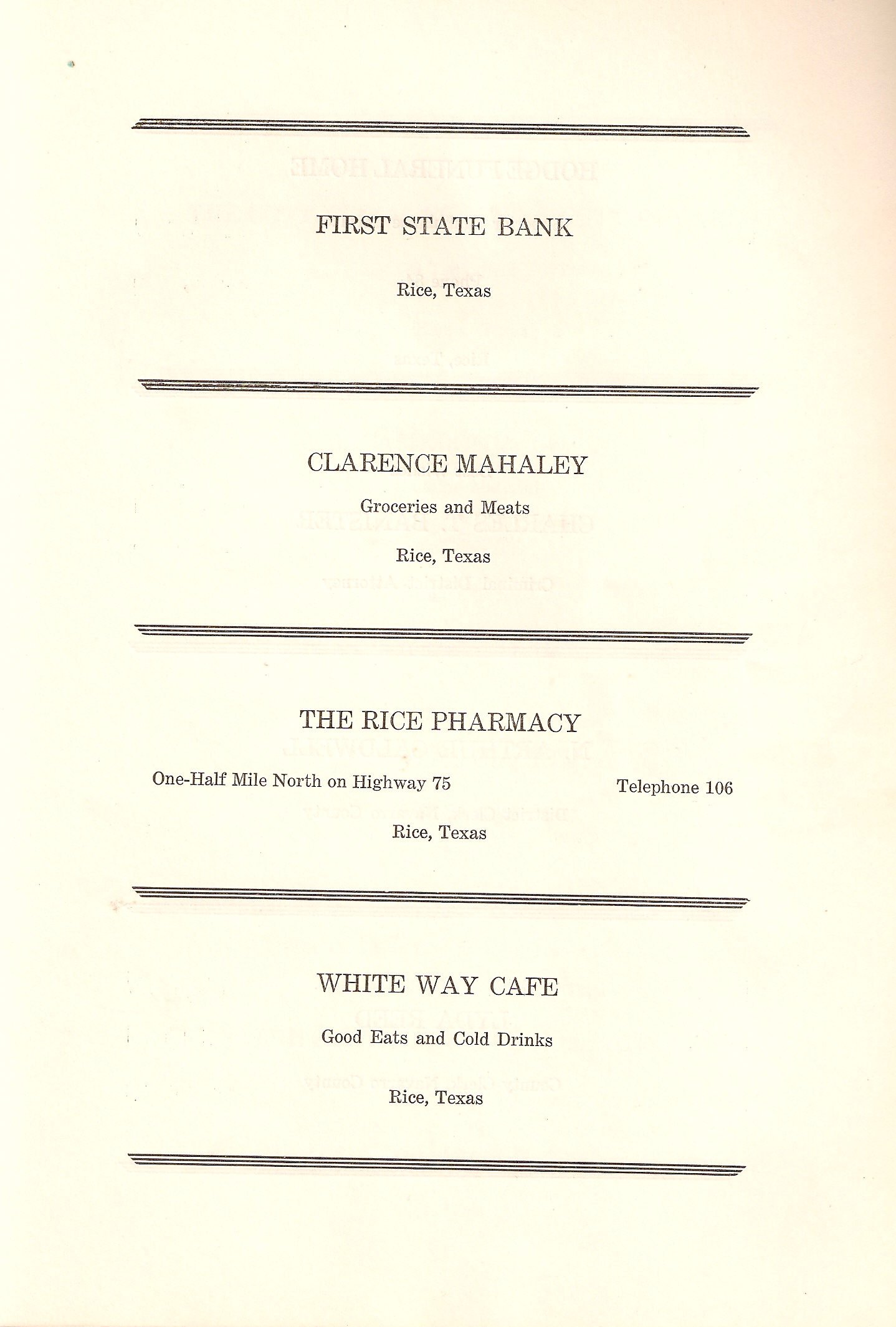 State Bank, Clarence Mahaley, The Rice Pharmacy, White Way Cafe