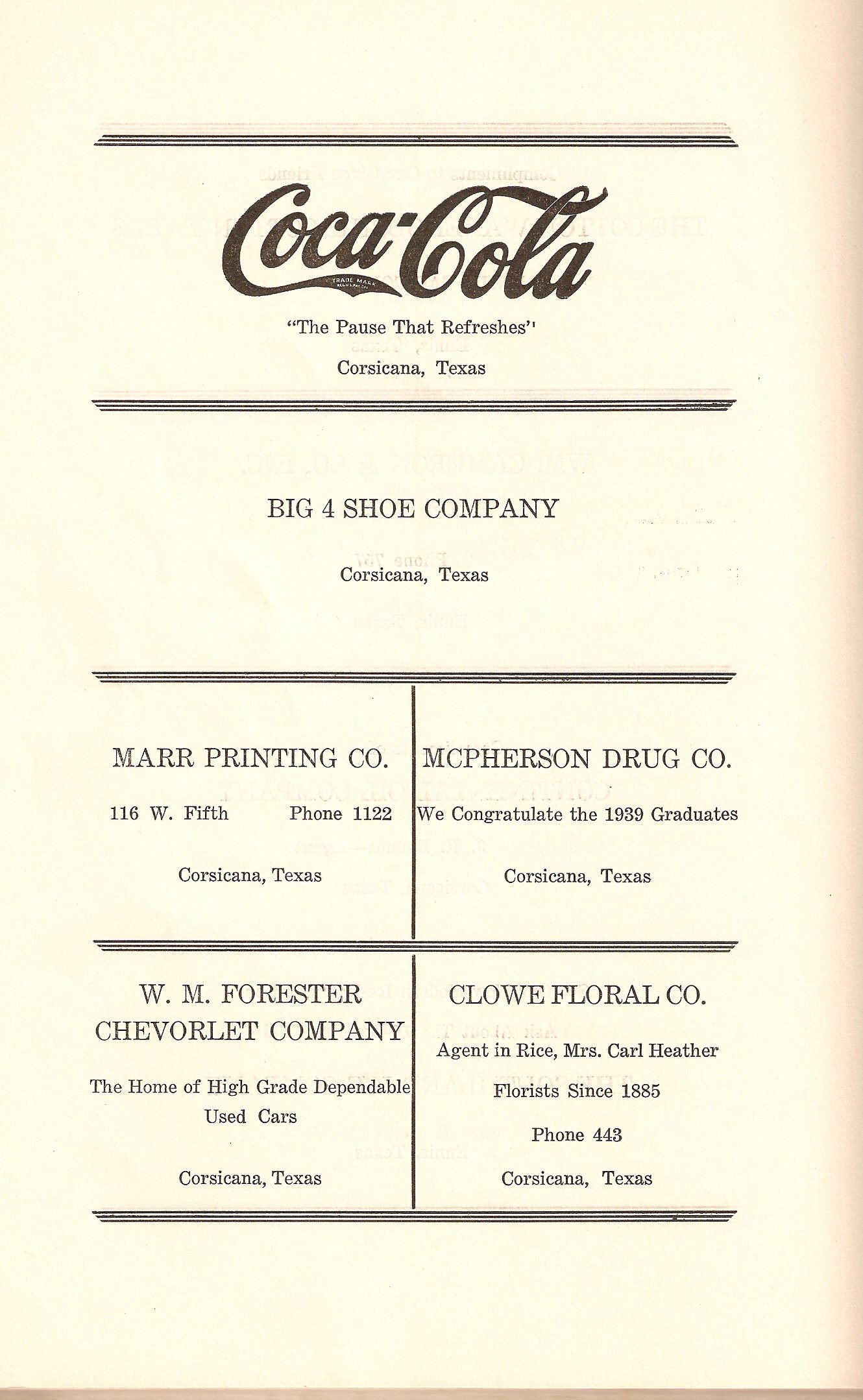 Coca-Cola; Big 4 Shoe Company; Marr Printing Co., McPherson Drug Co., W. M.