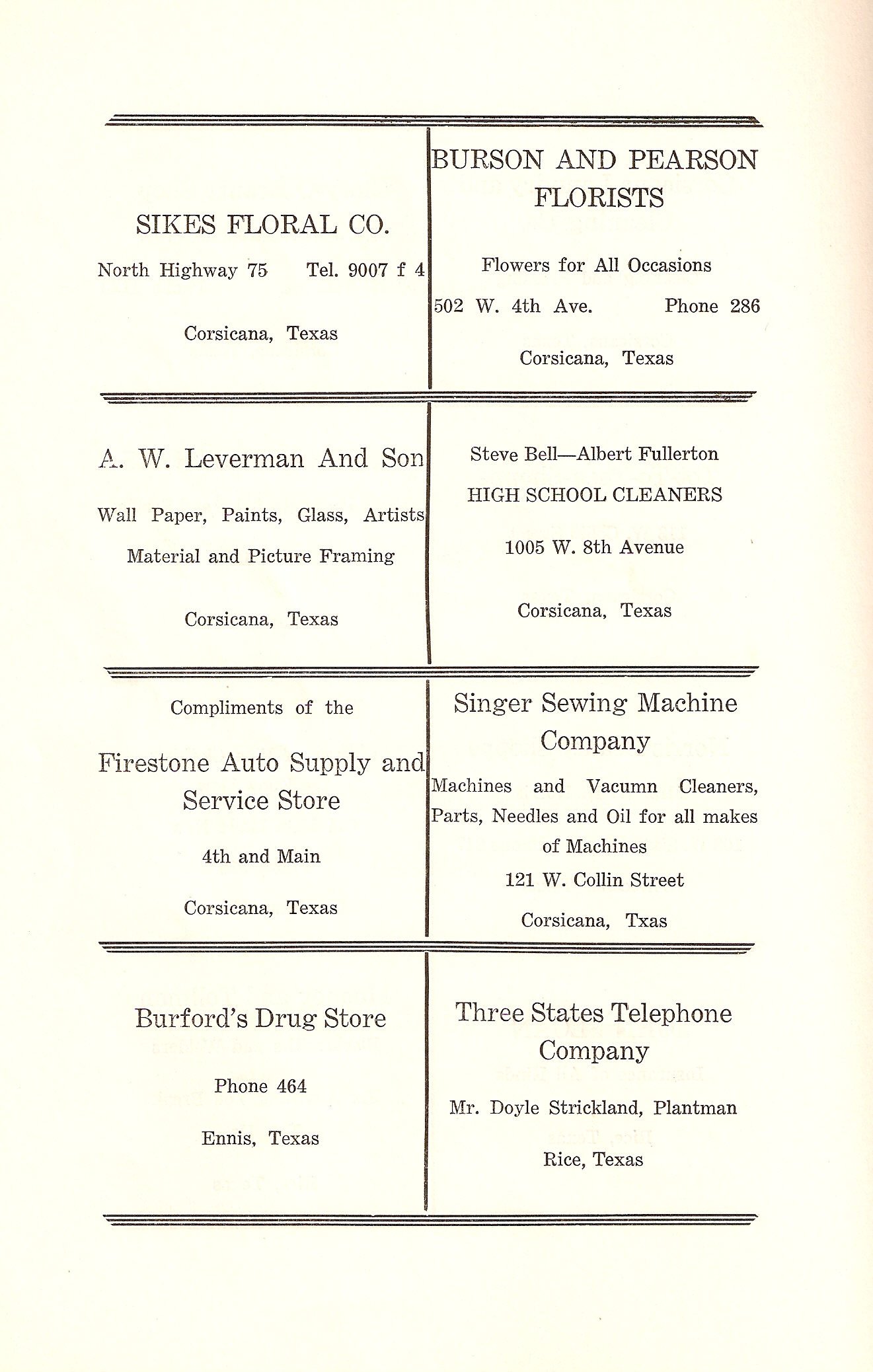 Floral Co., Burson and Pearson Florests, A. W. Leverman and Son, High School