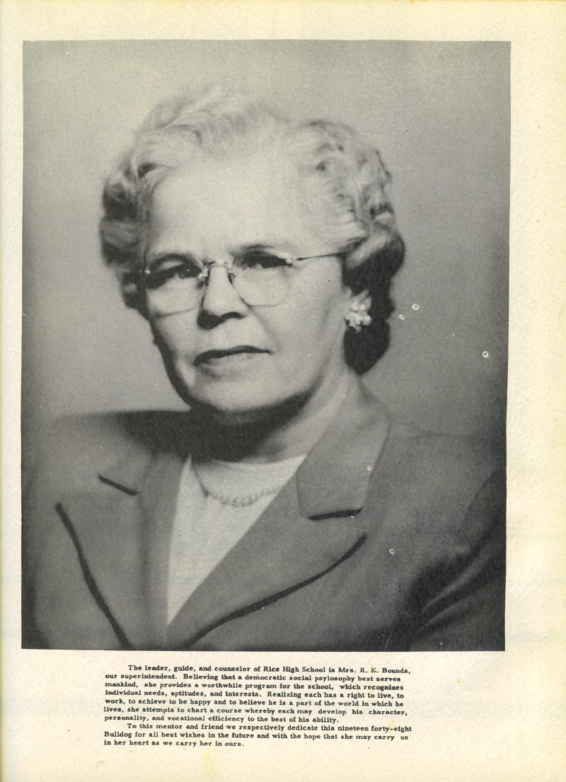 Dedication: Mrs. R. E. Bounds