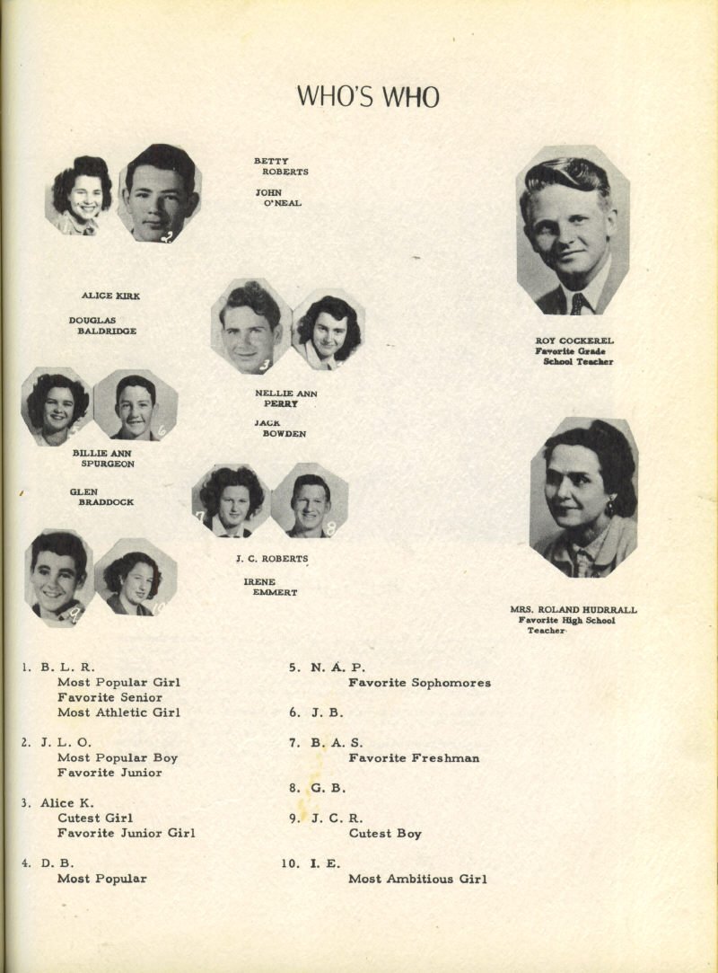 Seniors - Betty Lou Roberts, Joe Chase, Hugh Emmert, Emma Jean Barns, Bobbie