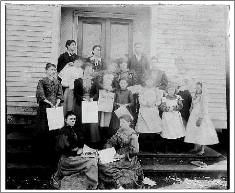 Back Row L to R: Stella Mae Sparks, (?), Teacher, Miss Wilson, Willie Ribble, Georgia
