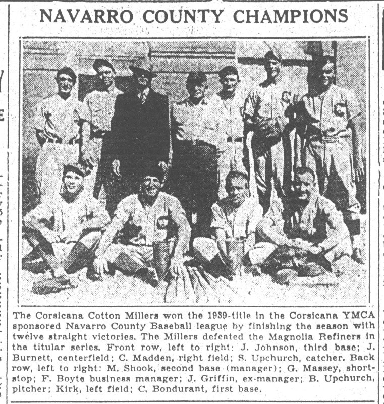 The Corsicana Cotton Millers won the 1939-title in the Corsicana YMCA sponsored
