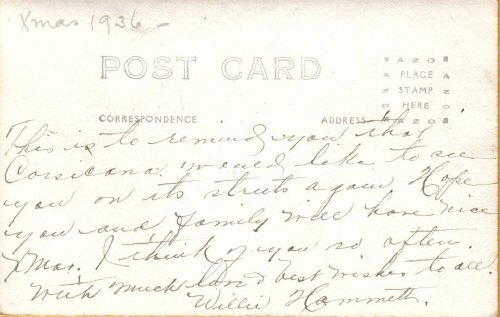 Back side of Card Written by Willie Hammett, great Aunt of Elizabeth Scarborough