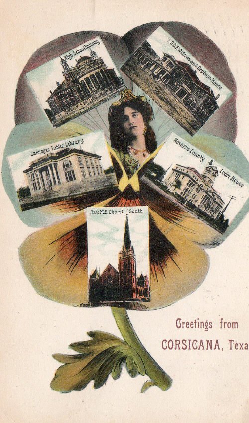 Greetings From Corsicana Postcard Navarro County, Texas