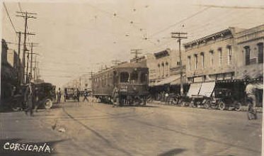 Corsicana, Interurban Station Sign in Foreground about 1923