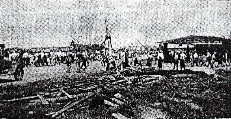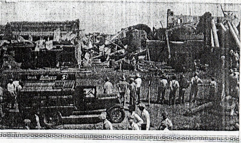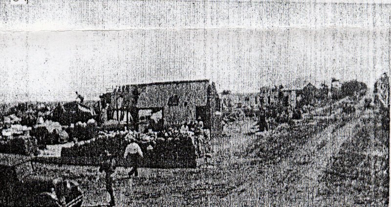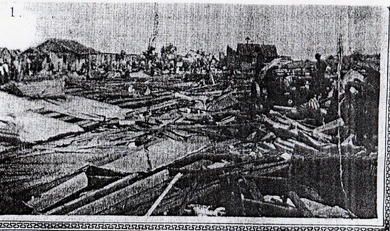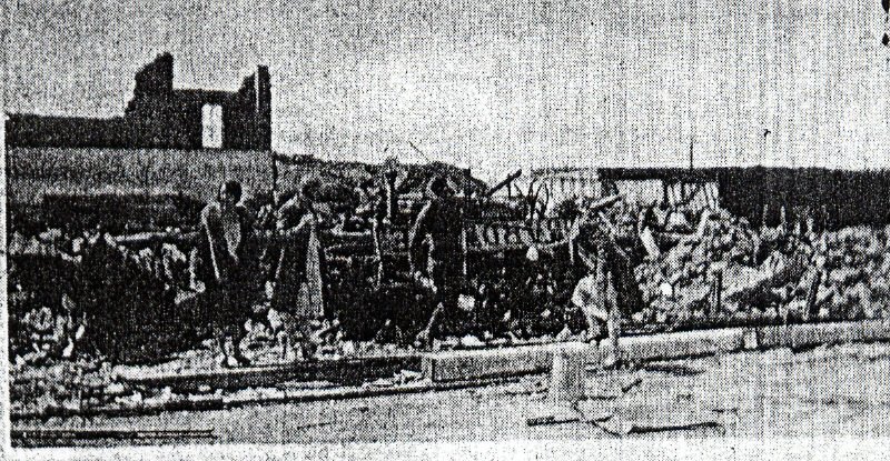 The Frost Enterprise building completely destroyed; the press can be seen at