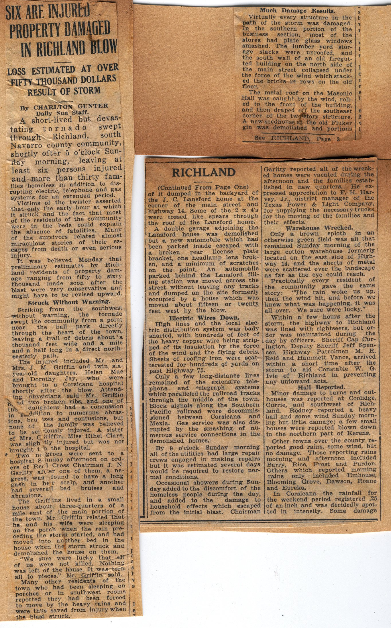 Scans of Newspaper Clipping from the Corsicana Daily Sun