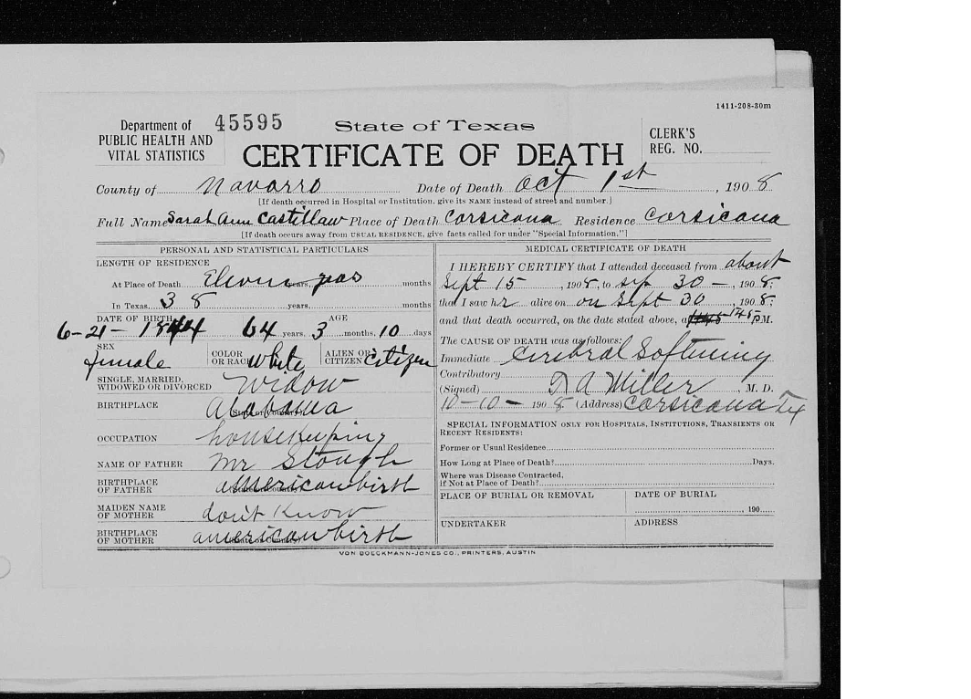 Sarah Ann (Stough) Castellaw