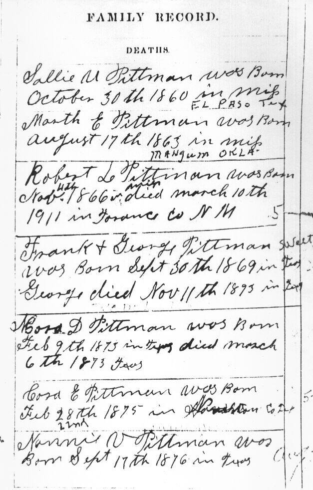 William Nelson & Winnie (Pryor) Pittman Family Bible Navarro County, TX