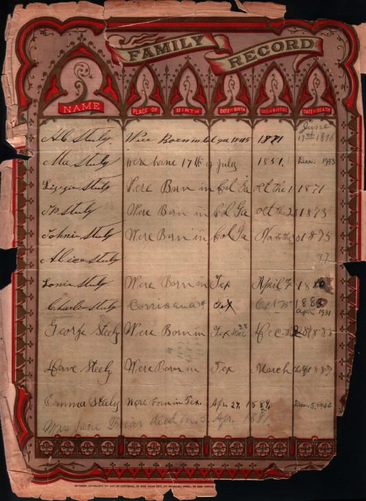 Steely Family Bible Navarro County, Texas