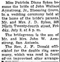 became the bride of Stokes Armstrong, son of Mr. and Mrs. L. W.