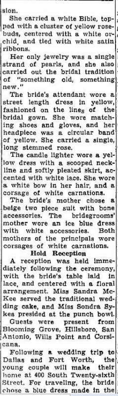 She was attended by her maid of honor, Lisa Coston of Corsicana.