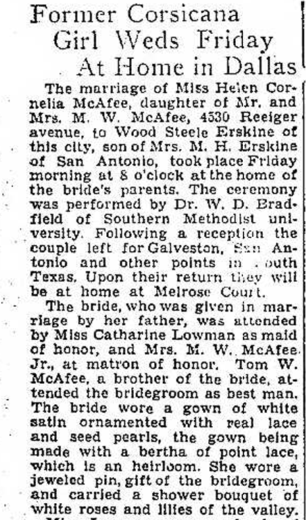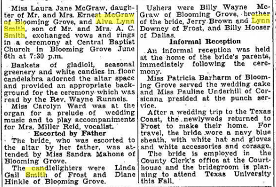 The Corsicana (Texas) Daily Sun, Saturday June 21, 1958 Bunyan Brassell & Amboline Feagin