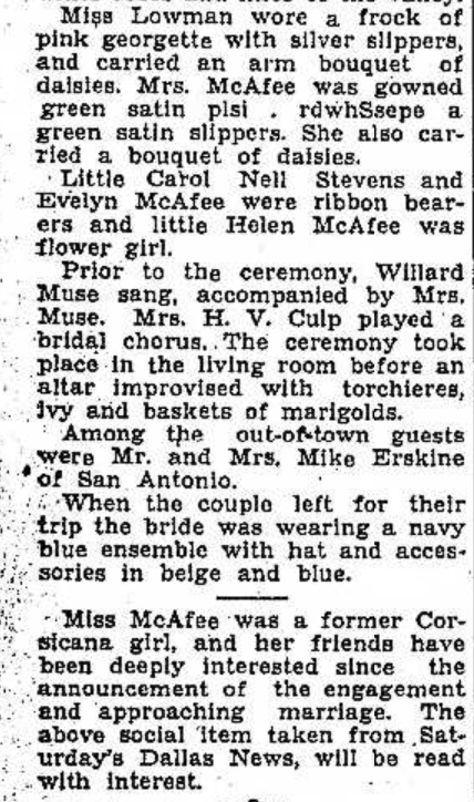 C. Mays, son of Mrs. John C. Mays of this city. The wedding took place in