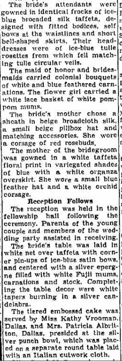 at the wedding and reception, and Tine Delayne of Waxahachie who