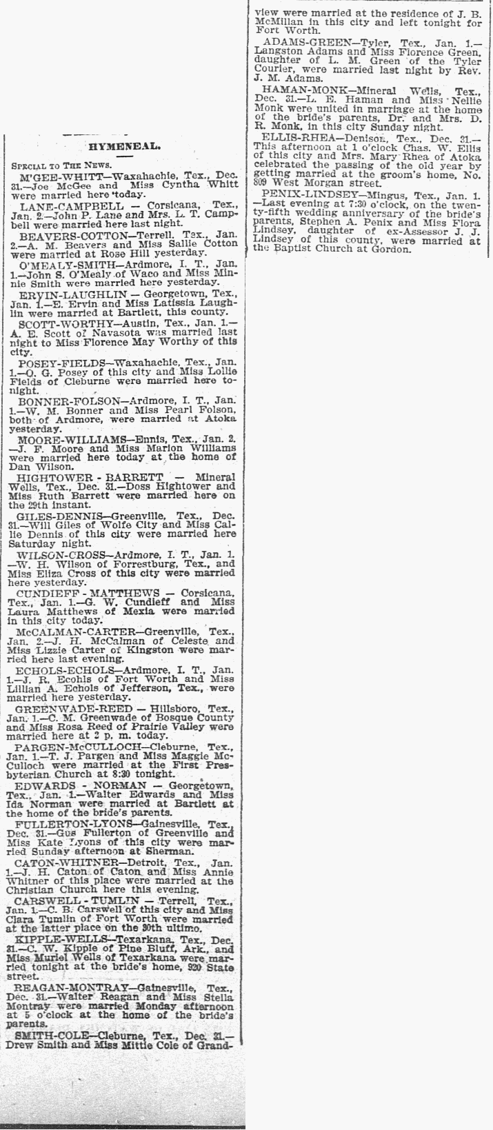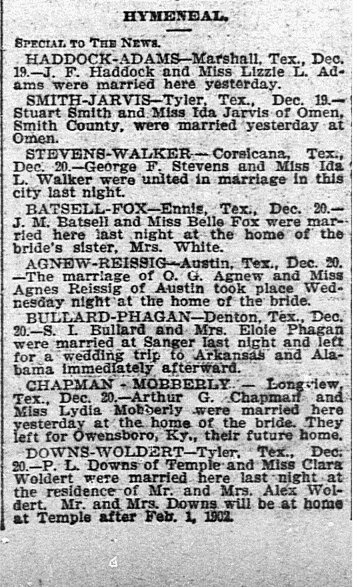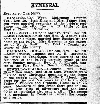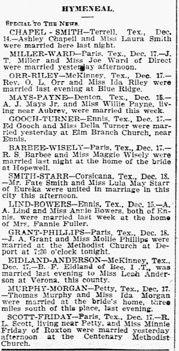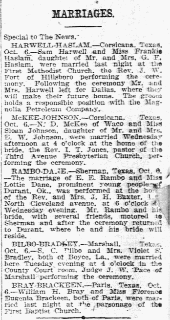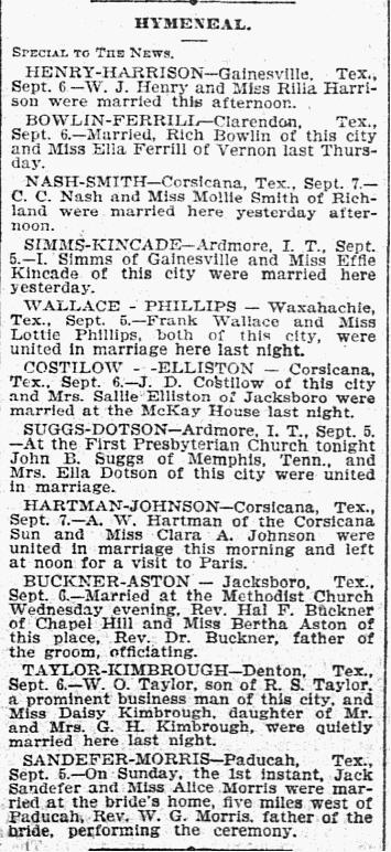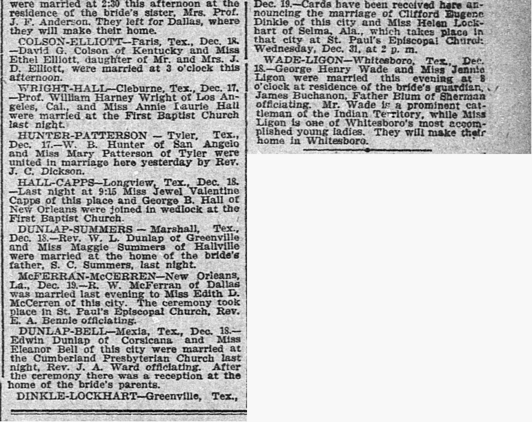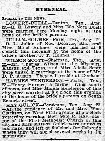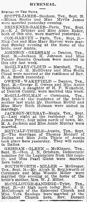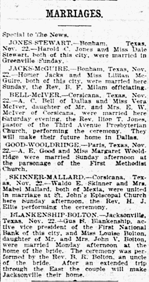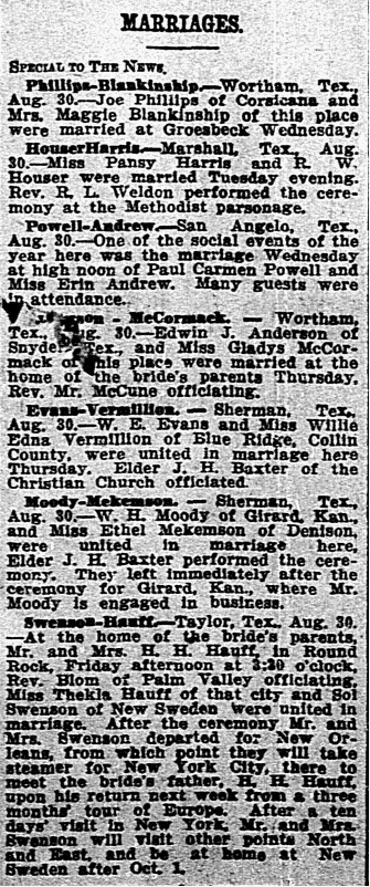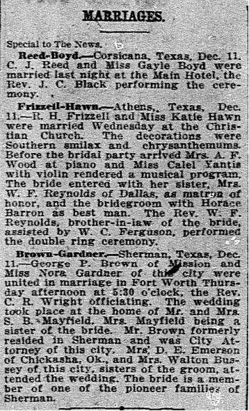 - Gorham - Dec 28, 1921 [license in Arkansas]