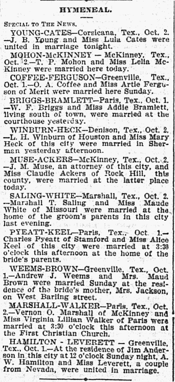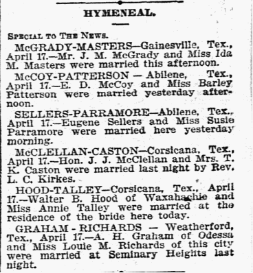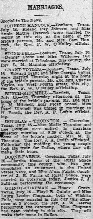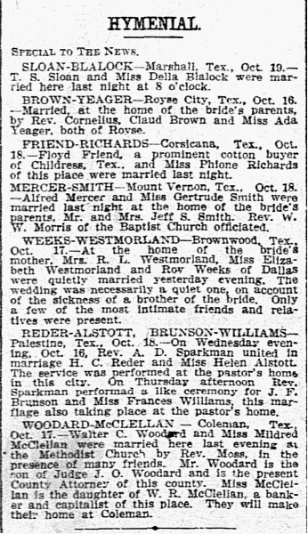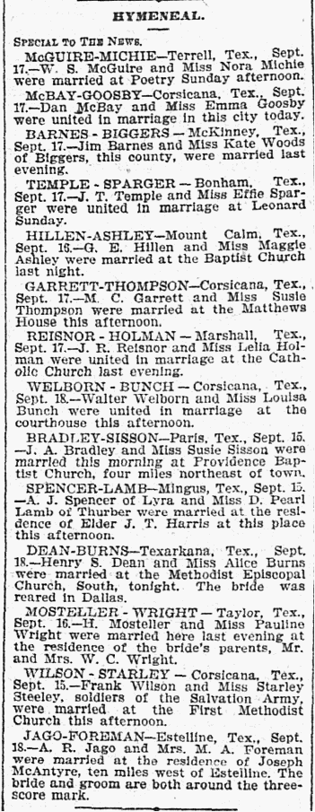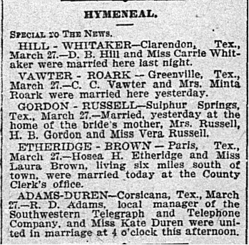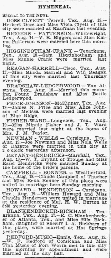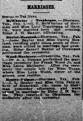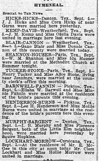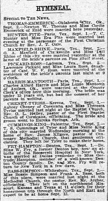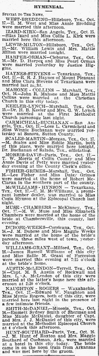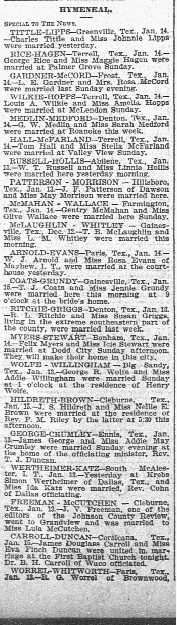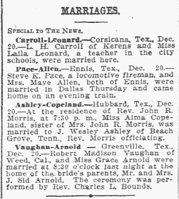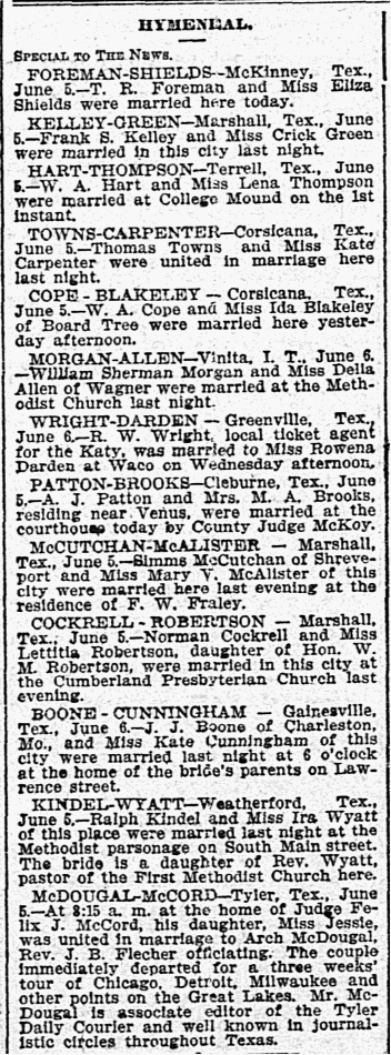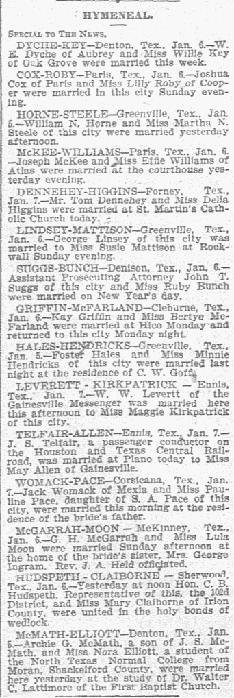 - Gorham - Dec 28, 1921 [license in Arkansas]