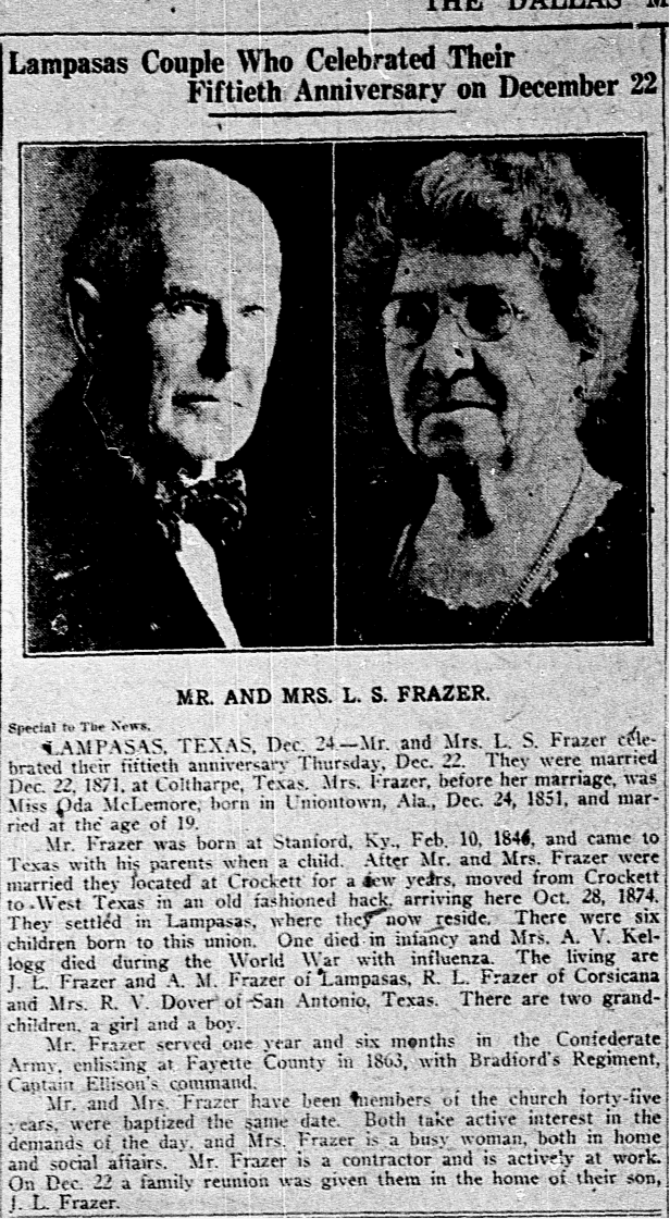 Mr. & Mrs. L. S. Fraazer - Dec 25, 1921