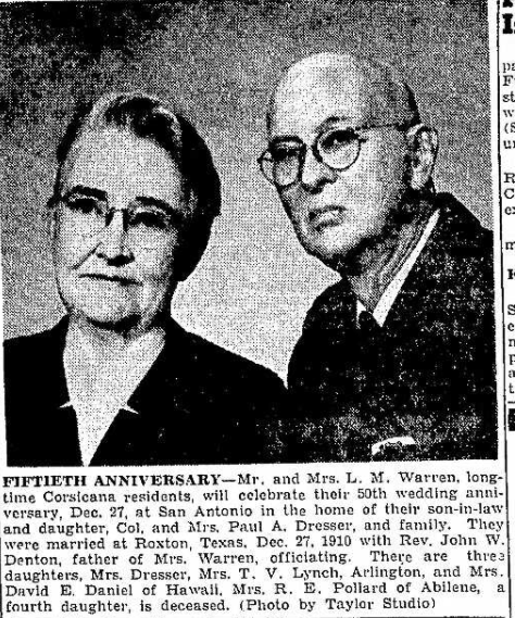 and Mrs. Herman Andrus near Corsicana; Mrs. Gordon Crawford and