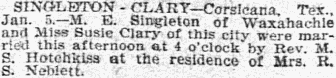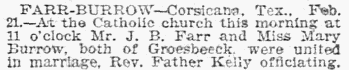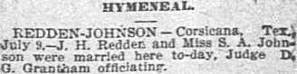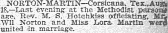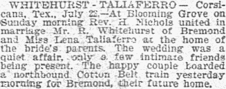 Rev. H. Nichols united in marriage Mr. R. Whitehurst of Bremond