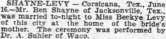 Reisman, of Ennis, and Miss Sarah, daughter of Mr. Aaron Shwarts, of Corsicana.
