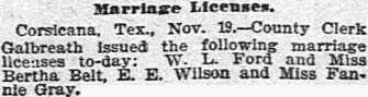 Corsicana, Tex., Nov. 19. - County Clerk Galbreath issued the