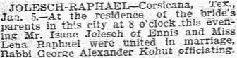 JOLESCH-RAPHAEL - Corsicana, Tex., Jan. 5. - At the residence of the bride's