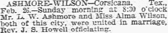 ASHMORE-WILSON - Corsicana, Tex., Feb.