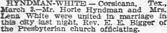 HYNDMAN-WHITE - Corsicana, Tex.,
