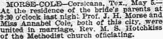 MORES-COLE - Corsicana, tex., May 5 - At the residence of the bride's parents