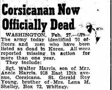 Hoengsong, South Korea on February 13, 1951. He was presumed dead on December